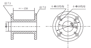 用鋼材做成如圖六形狀的過(guò)渡架,過(guò)渡架的法蘭能直接焊在爐墻外壁上或埋入爐墻中,但要求氣密牢固。過(guò)渡架另一端法蘭是為固定檢測(cè)器而設(shè),因此必須與檢測(cè)器固定法蘭的螺孔相匹配。如果用Ф12mm安裝孔,則在過(guò)渡法蘭的Ф130mm圓上均布四個(gè)Ф12mm安裝孔,使用4個(gè)M10×40的螺絲,將它與檢測(cè)器的固定法蘭緊固,為防止漏氣,兩法蘭間可填充橡膠紙板密封圈。