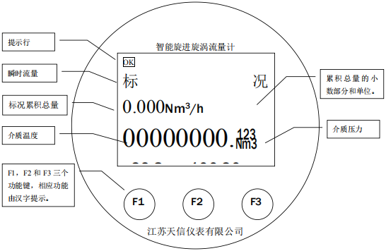 5、旋進旋渦流量計正常工作時,提示OK,如果出現錯誤時,則提示ERR,并有相應的錯誤提示符號;